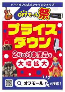 オフモール祭開催中! 2026 2/01 イベント お知らせ news 2026年2月1日 対象商品大幅拡大中!この機会をぜひご利用ください!皆様のご来場お待ちしています! ハードオフ公式オフモール イベント お知らせ news この記事が気に入ったら いいねしてね! よかったらシェアしてね! URLをコピーする URLをコピーしました!